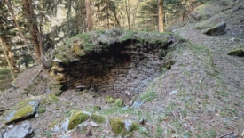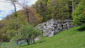 A moins de 5 mètres, de l’autre côté du sentier, une falaise de 3 à 4 mètres, portant encore de grandes traces de lacération, fut vraisemblablement utilisée pour l’approvisionnement. Des malins, ces Walser !