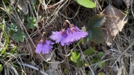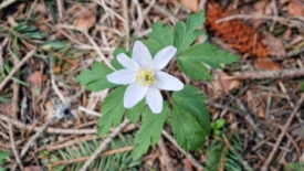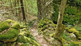 Le sentier continue dans la forêt. Les feuillus sont encore bien présents et les feuilles de l’automne passé recouvrent le terrain, rendant nos pas bruyants et parfois incertains de ce que nos semelles vont trouver.