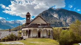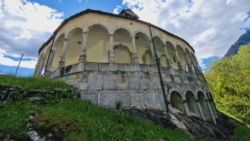 Cette église fut construite sur un éperon rocheux entre 1852 et 1878 par un seul homme, Don Lerenzo Dresco. Outre ses talents de sculpteur de pierre – l’église est entourée d’un péristyle de 48 colonnes, Don Lorenzo Dresco y officia en tant que curé durant 26 ans. Ici, dans le village, il est considéré comme un saint.