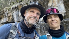 Nous traversons le torrent Rio d’Alba, beaucoup plus impétueux que lors de notre précédent passage. Nous apprécions les câbles sécurisant la traversée.