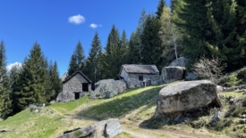 Au petit déjeuner, confortablement installés devant notre bol de céréales, nous décidons de reparcourir la Straa di Vacc, un sentier construit à la fin de la guerre pour mener le bétail dans les alpages. Le terme de construction n’est pas exagéré : le sentier est pavé sur quasiment toute sa longueur et de nombreux ouvrages en pierre sèche ou bétonnée viennent le consolider et le sécuriser, ou simplement, le faire exister. J’ai en tête de proposer de continuer après Aleccio. Mais je n’en parle pas encore, je verrai comment se goupille la balade.