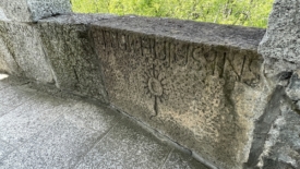 Chaque pierre du parapet qui supporte les colonnes est gravée.