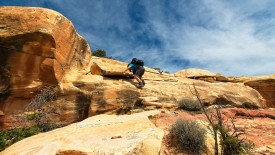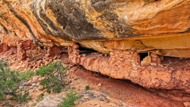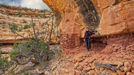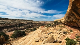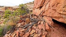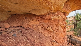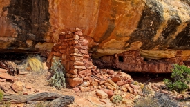 De notre Granary Row, nous montons en direction du plateau de la mesa. Ici encore, un tas de pierre témoigne que nous ne sommes pas les seuls à avoir imaginé cette sortie. La marche à franchir est néanmoins moins haute que tout à l’heure.