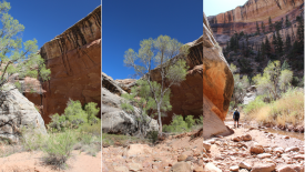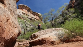 Aujourd’hui, le but n’est pas de refaire la randonnées de 2011 mais d’explorer des canyons adjacents afin d’y découvrir peut-être (mais certainement) des traces du passé. Les rangers nous donnent quelques conseils, nous font part de leur préférence mais ne prononcent pas une seule fois le mot « ruines ». Nous nous y attendions : si ruines il y a, c’est à nous de les découvrir.