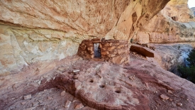 Comme hier, l’air est frais lorsque nous sortons de l’hôtel, vers 7h. 32° F, soit un poil moins que 0° C. Mais le ciel est bleu et nous savons que la chaleur arrivera dans quelques heures. Aujourd’hui, nous partons pour la première fois, explorer le White Canyon hors des sentiers battus, pour y découvrir des ruines.