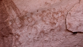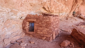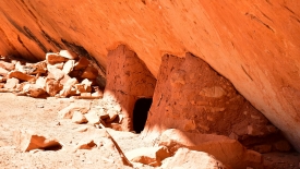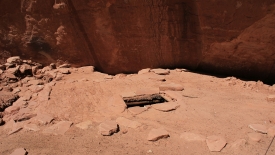 Devant ce grenier, 3 cavités creusées dans la roche, à intervalles réguliers. Petit rappel : les Anasazi ne connaissaient ni n’utilisaient le métal. Leurs outils étaient faits d’os, de bois ou de pierre.