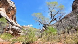 Nous partons sur la UT-95, vers l’ouest et tournons à droite sur la UT-275 : direction Natural Bridges National Monument. Nous y avions fait une magnifique balade en 2011 (voir ce billet).