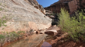 L’eau qui arrive ici, après s’être baladée sur le slick rock, est parfaitement transparente.