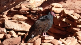 Le vautour est toujours là, il n’a guère bougé en 3 ans. Il attend qu’un touriste imprudent se rompe le cou pour s’en délecter. En tout cas, il n’est pas farouche. Nous avons un doute quant à l’authenticité des ruines sur lequel il se tient : ce sont bien des restes de murs, mais de quelle époque ?