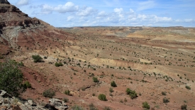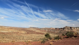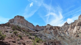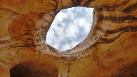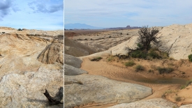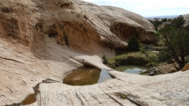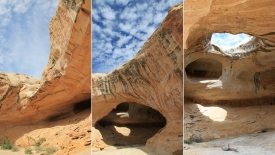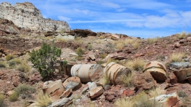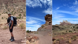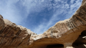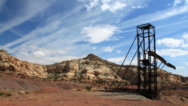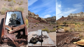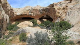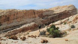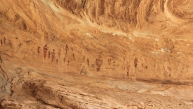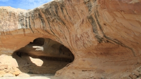 Nous poursuivons notre découverte du San Rafel Swell. Aujourd’hui, nous partons visiter Wild Horse Window, une énorme alcôve avec le plafond troué, jadis fréquentée par les Natives Americans, comme en témoignent les quelques pictogrammes qu’ils nous ont laissé. Ensuite, nous errons autour de Temple Mountains et ses mines abandonnées.