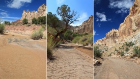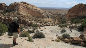 L’idée d’origine était de redescendre dans le wash qui se transforme en canyon, le Wild Horse canyon, de rejoindre la route Behind the Reef et de revenir à la voiture par la Temple Mountain Road.