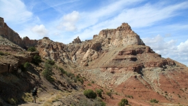 Nous partons donc en direction de Temple Mountain, de ses mines. Il y a un sentier qui passe au pied de cette montagne, contourne une butte avant de rejoindre la plaine et le parking.