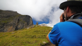 Les deux randonneurs nous ont rejoints. Un père et son fils. Des allemands, souriants et visiblement ravis de vivre ensemble cette aventure. Ils nous proposent de nous prendre en photo avec notre matériel. Nous avons pour principe de ne jamais refuser. Nous leur retournons la politesse.