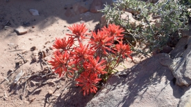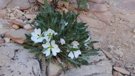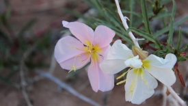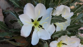 Un groupe d’américaines bruyantes arrivent. Elles ne sont que trois mais font un raffut du tonnerre. Je pars explorer la flore des environs. En bas, dans le lit du wash inaccessible, j’ai repéré des énormes fleurs blanches.