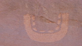 Le manque de recul rend la prise de photos délicate. Près de la paroi, nous sommes à peu près à la hauteur des pictogrammes mais nous avons 30 cm de battement. Si nous voulons reculer, alors il nous faut descendre.